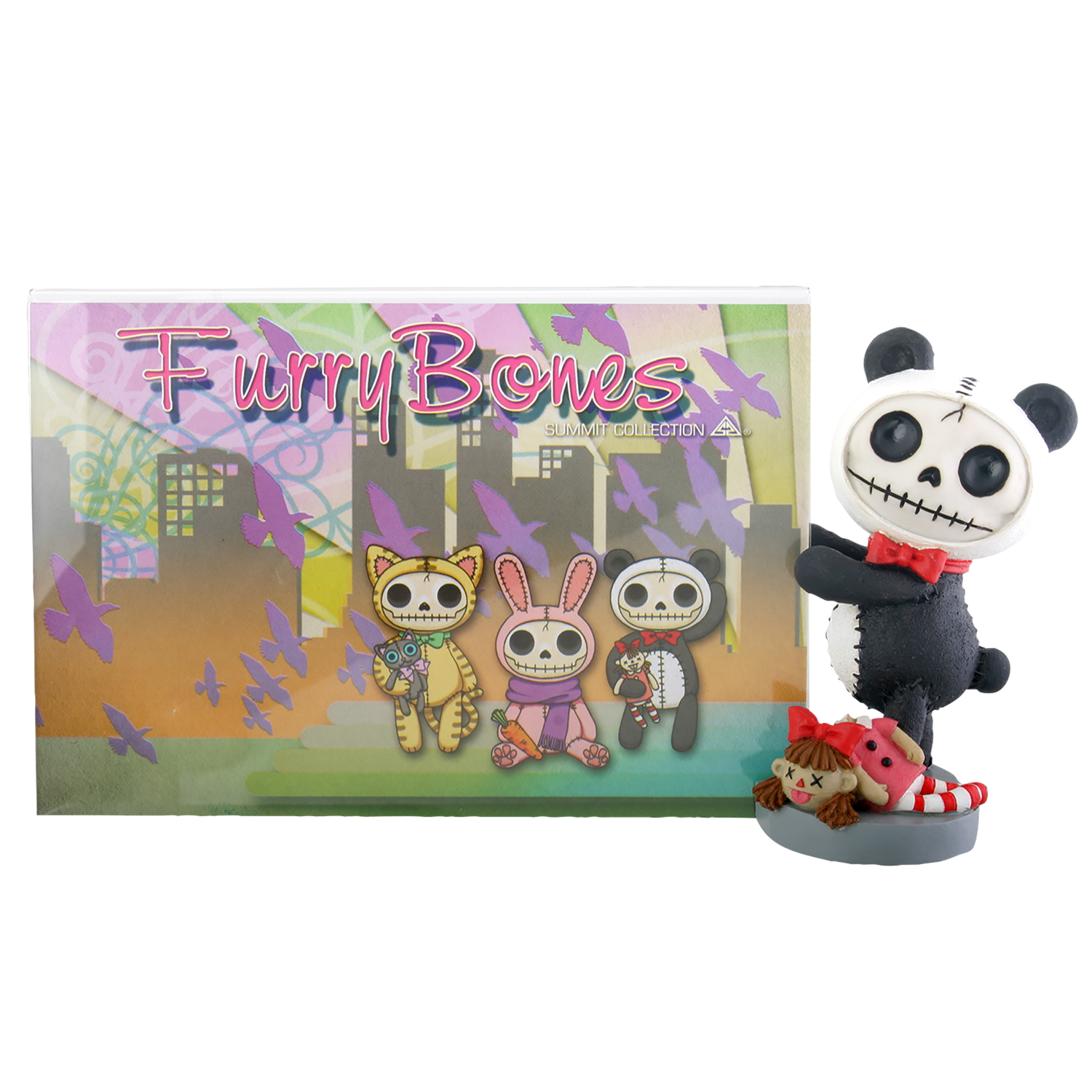 Furrybones® Pandie is a resin figurine featuring our signature skeleton dressed up as a definitely innocent panda bear with a beheaded doll. This special edition is holding up a picture frame, perfect for displaying memories.