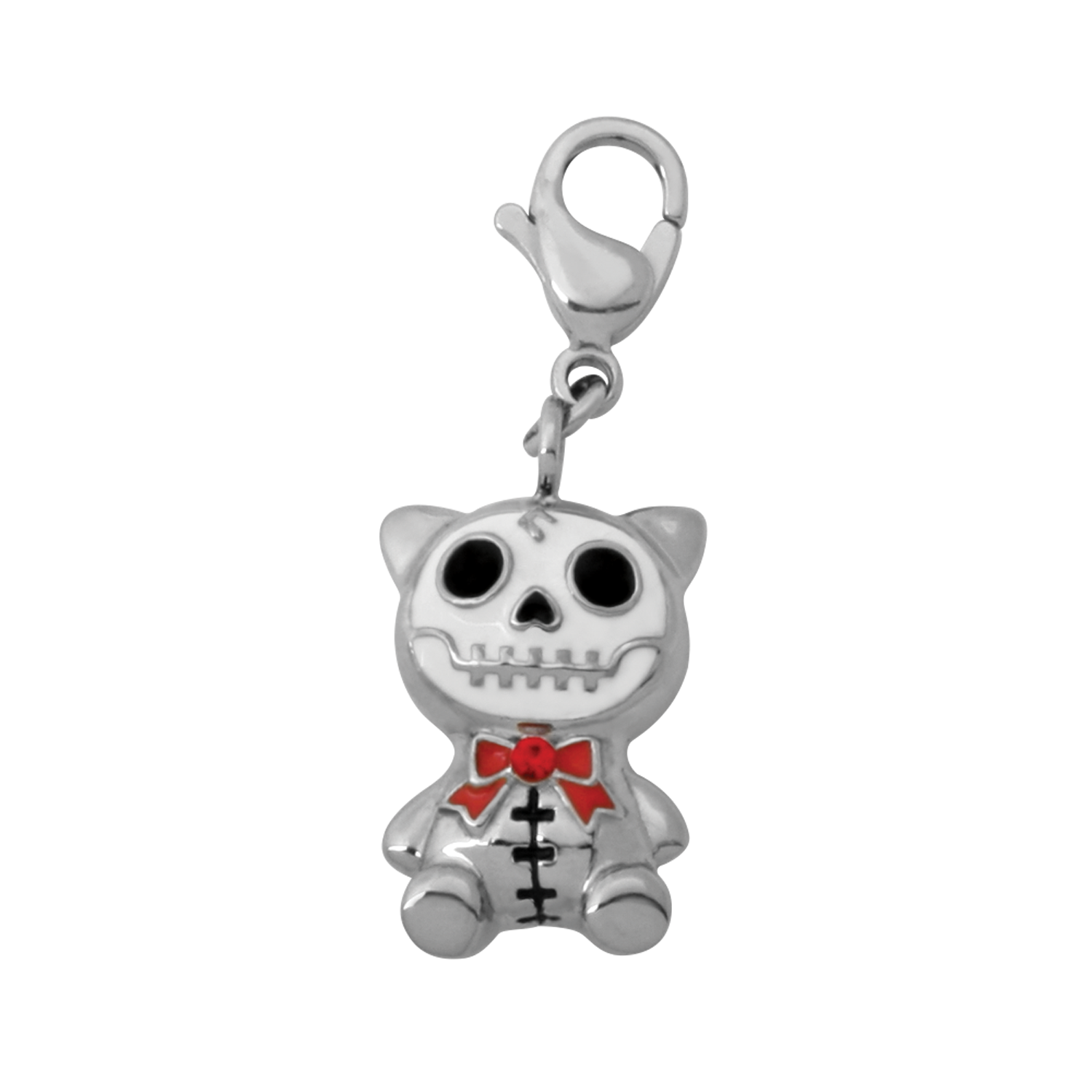 This 316L Furrybone charm is decorated with a red bow, This Mao-Mao harm is a cool finishing piece to any styling.
