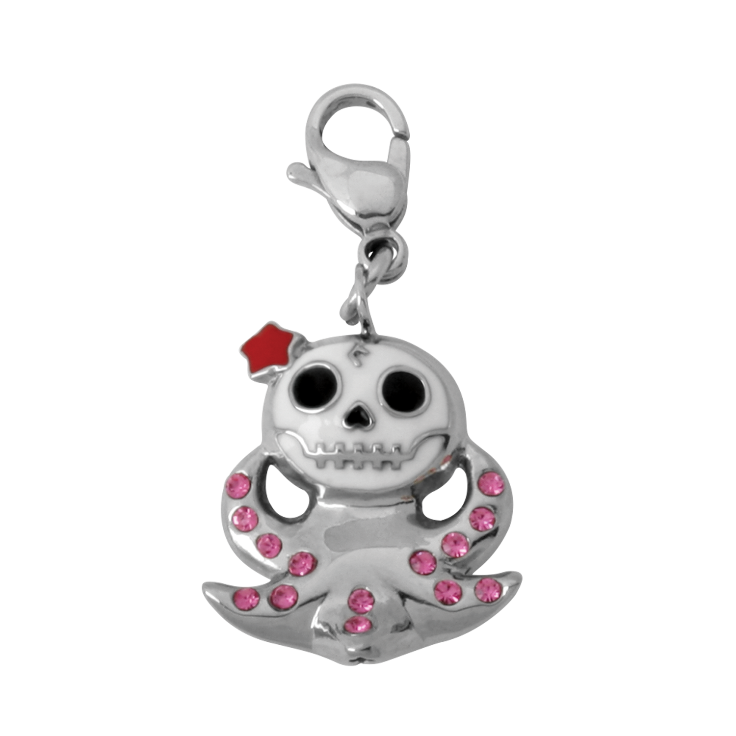 This 316L Furrybone charm is decorated with glittering stones, This Octopee Charm is a cool finishing piece to any styling.