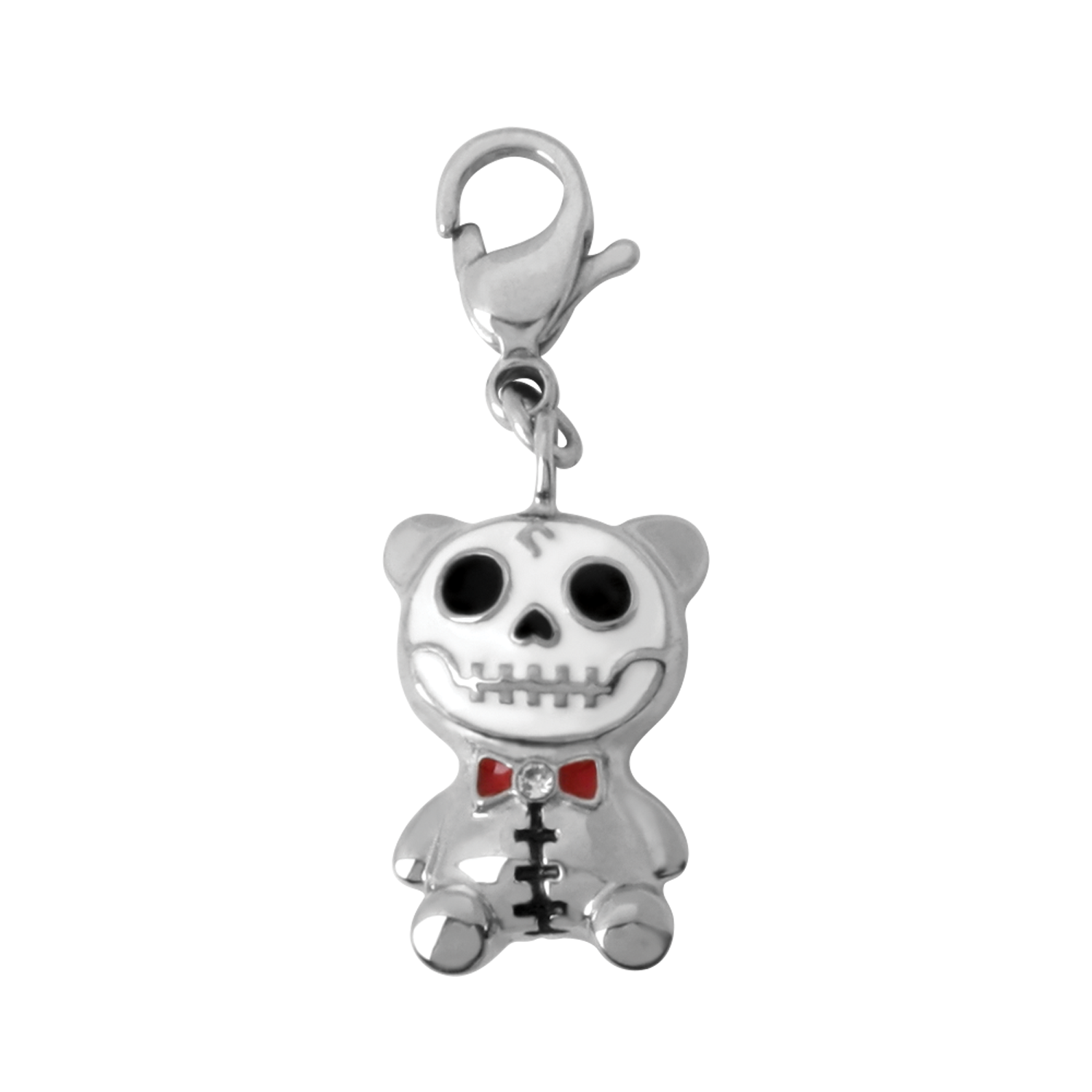 This 316L Furrybone charm is decorated with a red Bow Tie, This Pandie Charm is a cool finishing piece to any styling.